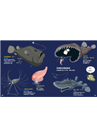 ․還有深海魚的大嘴巴、大眼睛、特殊的捕食絕招…等,用特徵作為主題,幫助讀者理解,清楚又有趣!