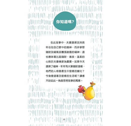 在這本書裡,我們搜集了18篇經典的日本民間故事,無論是「報恩系列」的《鶴的報恩》、「勸善懲惡」的《開花爺爺》、「找尋自我價值」的《老鼠嫁女兒》、「奇幻傳說中」的《雪女》、「人鬼鬥智」的《木匠與鬼六》、或是「因果報應」的《猴蟹大戰》等……,都是以曲折有趣的情節構成,寄以深厚的涵義而成的故事。主要還是帶有正面的寓意,勸人行善行樂。
