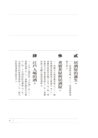 一、江戶人喝的是「下行酒」/二、酒類海運/三、酒類品牌世代交替/四、下行酒的附加價值/五、元祿時代的批發酒商街/六、新川的批發酒商門庭若市
