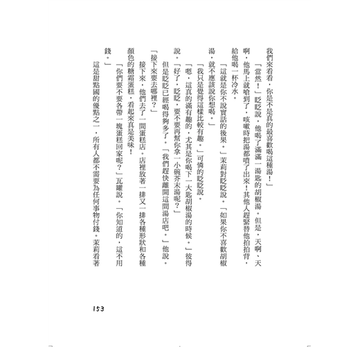「我記得。」茉莉說。「我們跑進了一間賣古董的小店,幫媽媽買生日禮物,然後我們看到好多被施了魔法的東西。我們嚇壞了,一起擠進了一張老舊的椅子上……」
