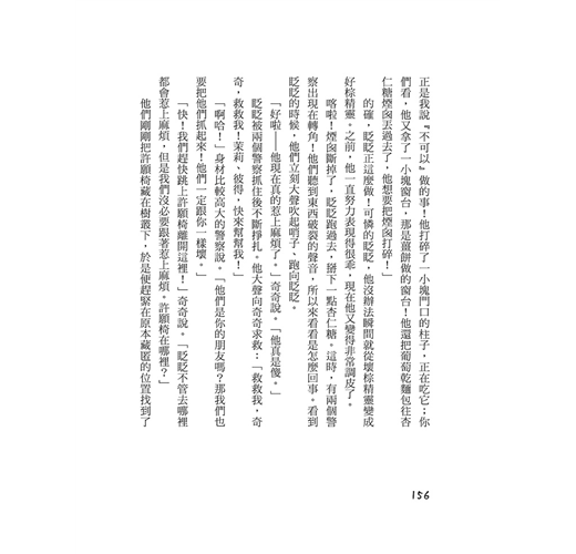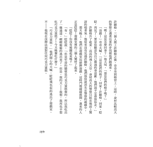「一次都沒有。」奇奇說。「很奇妙,對吧?它一直乖乖的擺在我媽媽的廚房裡,就像其他平凡的椅子,連一隻紅色的翅膀都沒有長出來過!我覺得許願椅是在等你們回來。」