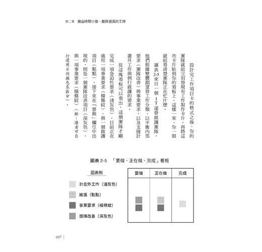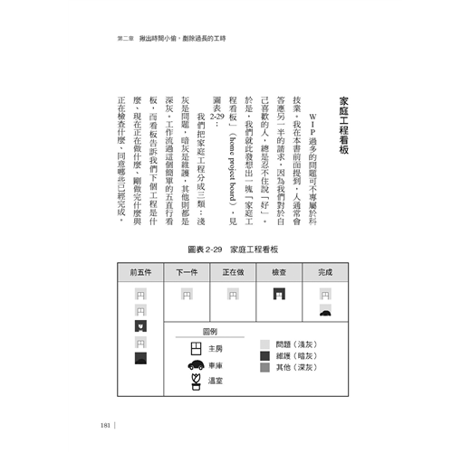 本書就要教你如何把工作呈現在看板上,秀出哪些部分進入停滯期、