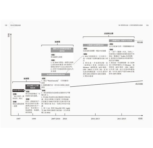 4)「爆發線」,爆發線指的是增長路徑中可以讓公司業務短期內呈現指數級增長的線。如果說增長線的增長設計是線性的,那爆發線要的就是指數級的。本書會將爆發線背後的基因如數位化、社交因子以及風投資本等一一進行呈現。