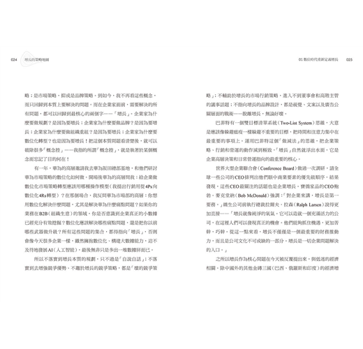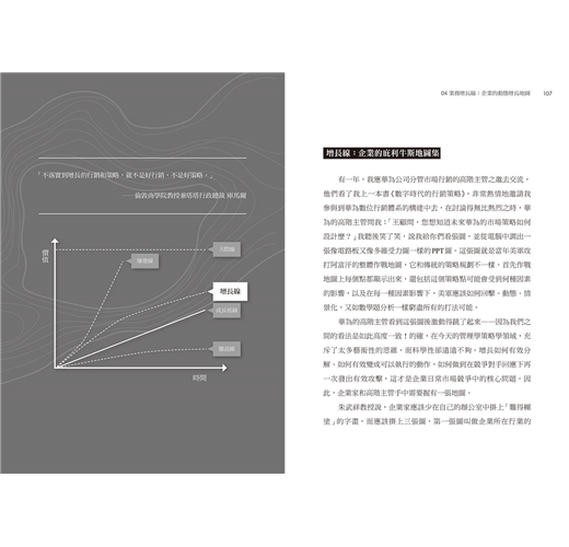 本書以一個全新的企業經營者視角,把數位時代環境中策略的宏觀視野和行銷的微觀洞察進行融合,試圖構建出一套企業領導者真下基於自身能力與規劃目標的可實踐增長體系。