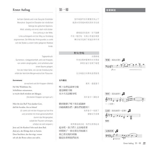 本書由夜鶯基金會精心編撰,除了全劇本歌詞中德翻譯,並有詳細音樂解說方便讀者跟聽閱讀。