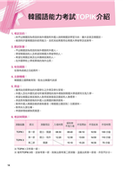 ——有了新制韓檢題目分析及戰略,輕鬆秒殺所有題目!想要考好新韓檢,除了考前準備要和時間賽跑以外,考試當中的答題速度也至關重要!本書針對新韓檢出題傾向,進行全面性的分析,並從多年來的大量考古題中,統整出題型規律,給你最高效的題目關鍵字提示、說明,幫助你在看見題目的那瞬間,就掌握到考試的整體傾向,無論是哪種情境、領域,都能夠見招拆招快速反應,減少思考時間,遊刃有餘地秒殺所有問題,輕鬆順利拿到高分!