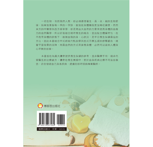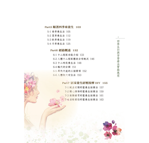 一切生物,包括我們人類,都必須遵循著生、長、收、藏的生物節律,如果能掌握每一季的一字訣,就能使身體機能更加暢旺健康。然而東方的中藥學與西方香草學,都是藉由大自然的力量來提高身體的自癒力的自然醫學。所以若能結合順時養生的概念,並且配合體質特性,在不危害身體的狀態下,檢視自我的身、心狀況,是平日養生保健最佳的方法。因此本書結合中式經絡穴點按摩與西式芳療五感的舒壓觀念,用最自然的方式來調養身體,必然可以達到人體身心平衡的目標。