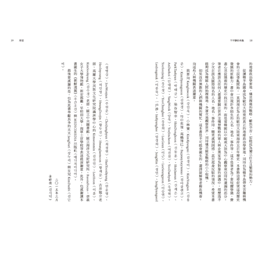 同時,金時德引用連我都感到驚艷的第一手、少見於國內的資料,諸如言及「丁卯胡亂」(정묘호란,1627)與「丙子胡亂」(병자호란,1636)時,採用《滿文老檔》、《滿文實錄》、《忠經》與《校經》等書(請參照第五章);言及清朝與殘留南明勢力戰爭時,引用《櫟翁稗書》(역옹패설)、《往五天竺國傳》(왕오천축국전)等書(請參照第六章),可說大大地擴充人們觀看角度與眼界。