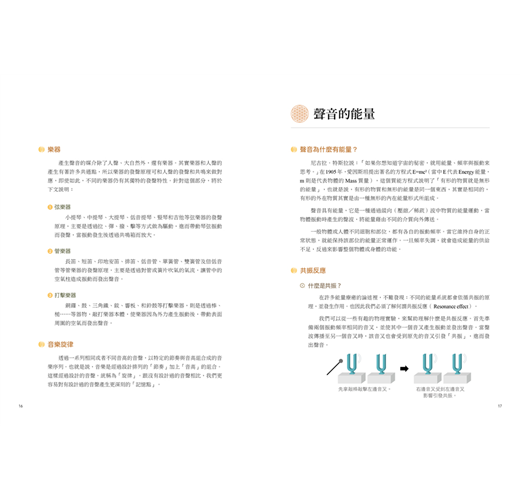 聲音,主要是因物體振動而發出聲波,再透過聽覺器官解讀,進而產生我們聽見的聲音,書中將說明原理及應用範圍,帶你了解聲波的秘密。