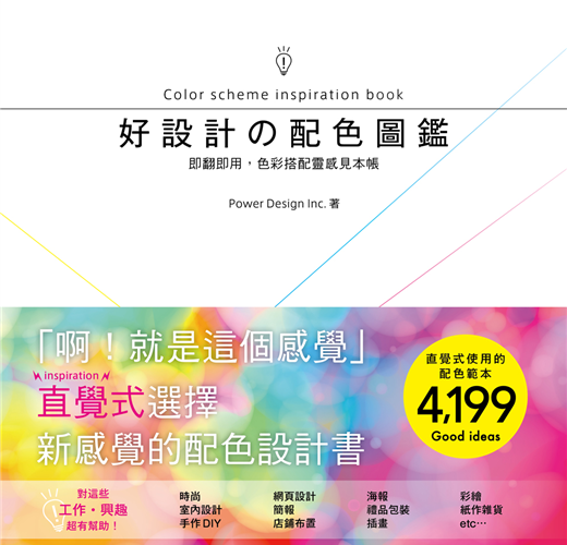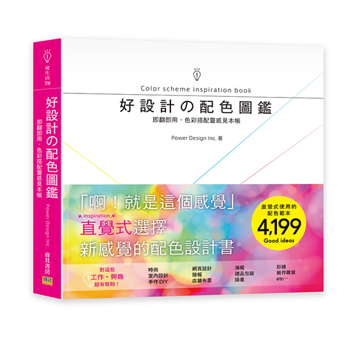 「配色」,是困擾許多設計師的一大煩惱,腦中雖有「大概」的形象,但仍然會有選色困難的情形,若試圖選擇用色、也往往達不到想像中的設計期望。本書介紹4,199款的色彩搭配範本,從關鍵字、照片、插畫、設計舉例或是圖樣等各式各樣的範例中,能啟發配色靈感,讓你在瞬間就能將配色活用於設計上。室內設計、海報、網頁設計、簡報、店鋪布置、禮品包裝、手作DIY、插畫、彩繪、時尚、紙作雜貨etc…,能活用於處理「色彩」的各種工作&興趣愛好。