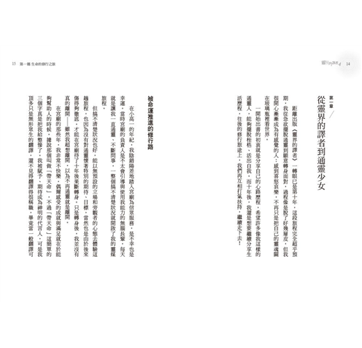 但搞不清楚狀況也好,能以無預設的立場和旁觀者的心態去體驗這趟旅程,也因為沒有對通靈懷著特別的期待、目標,當然也是由於後來傷得夠徹底,才能在宮廟待了十年後果斷轉身。只是轉身後,我並沒有真的離開——雖然我超想離開,以為不再通靈就是離開。