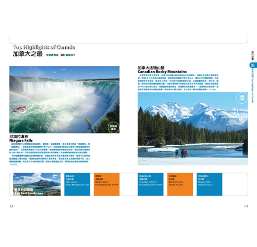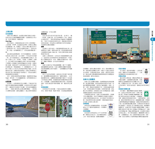 ▌本書特色若要暢遊加拿大,公路旅行無疑是最經典的方式,本書不但在地圖與交通資訊中提供詳細的道路指引,還特別撰寫專文,說明租車自主遊的各項細節,包括租還車方式、交通規則、加油方式、特色路線、時空里程表及注意事項等,消除國人出國開車的疑慮。