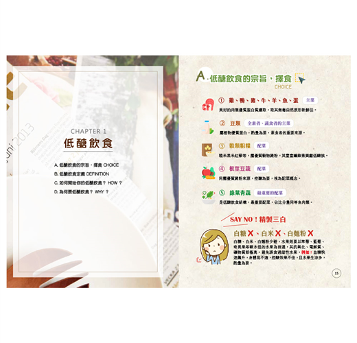 《低醣飲食指南 - 30加油讚實作計劃》是一本從擇食低醣無麩質角度切入飲食,分享讀者們如何開始低醣飲食、怎麼選擇、怎麼吃、怎麼補充自身所欠缺的營養。" 藥非萬能,藥食同源 ",『擇食』對於低醣飲食是一個很重要的知識,從選擇【三白SAY NO】開始
