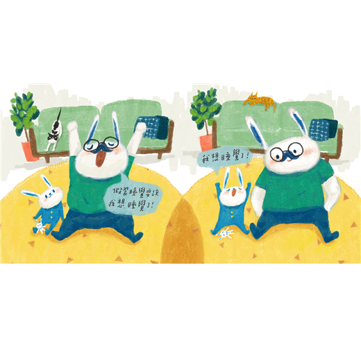 ▲編輯說建議家長在親子共讀時帶著孩子一起想想:假裝睡覺可以做些什麼呢?要先打呵欠、到床上躺好、蓋被子,接著還能做什麼呢?在問答、互動中建立親子間的睡前儀式。一起做個好夢吧!