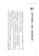 對現今的年輕朋友來說,許多外在環境的困境,和過去相比,有過之而無不及。在網路化、M型化趨勢的衝擊下,企業或個人面對的挑戰更加複雜。相信許多年輕朋友都想知道,自己30歲後會站在哪裡,更重要的是,要怎麼樣做才能往正確的方向走,確保30歲以後站的位置越來越有競爭力。
