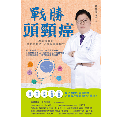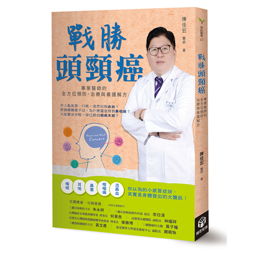 佳宏醫師在他的著作《戰勝頭頸癌:專業醫師的全方位預防、治療與養護解方》,從頭頸癌的預防、診斷、最先進的治療,以及疾病末期的處理,均做了最詳盡的闡述。