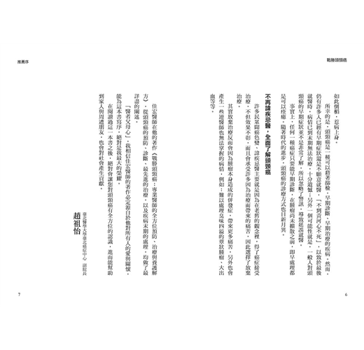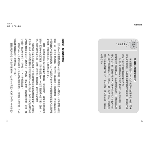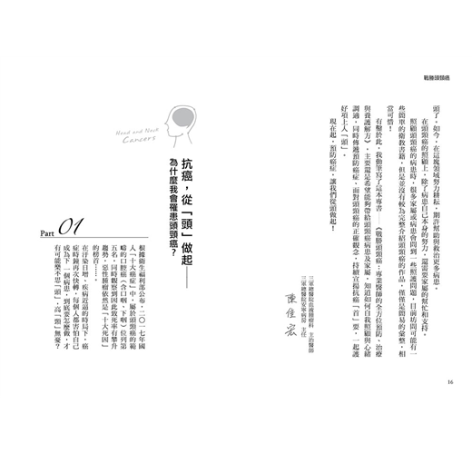 在閱讀過這一本書之後,絕對會讓您對頭頸癌有全方位的認識,進而能幫助到家人與周遭朋友,也會對社會產生貢獻。