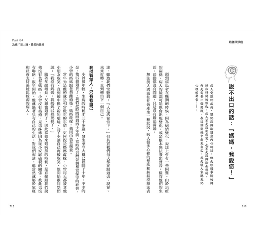 衷心希望每一位頭頸癌患者在讀完這本書後,能有所感觸,期望未來頭頸癌患者能得到最好的身心靈照顧。
