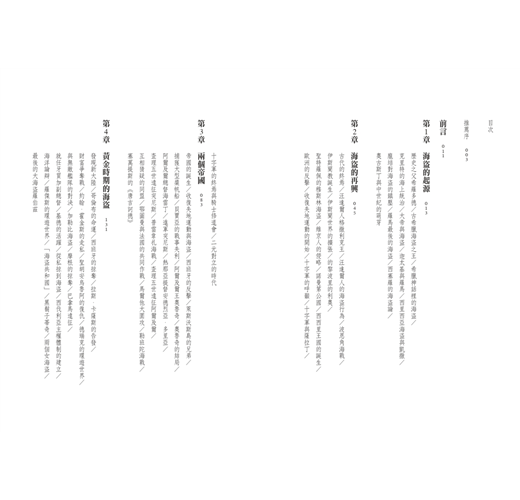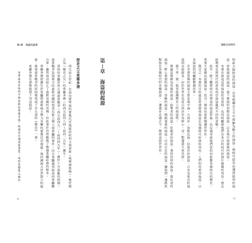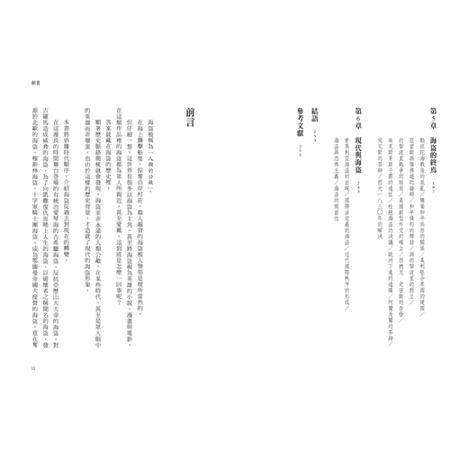本書在敘述這些海盜的英姿時,也同時觀察他們在各自的時代扮演什麼樣的角色,想必能夠看見與現代的索馬利亞海盜截然不同的姿態。