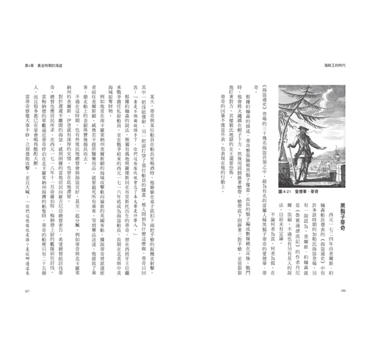 在本書中,作者便以海盜興衰為主軸,生動刻劃出諸如紅鬍子海盜兄弟、德瑞克、黑鬍子蒂奇,還有史上最著名的女海盜――安妮.邦尼與瑪麗.里德等人顛覆世界秩序的精彩樣貌。