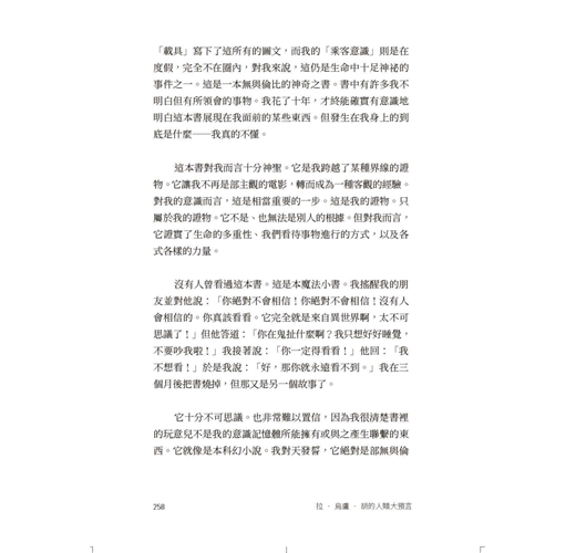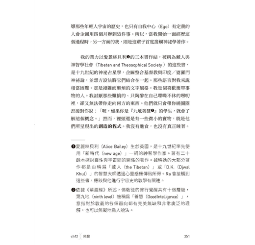 可若是你所進行的人類設計實驗,正因為過度聚焦在自己身上而遇到某種瓶頸(對,沒人跟你保證過「做自己」人生就會從此高枕無憂一帆風順),想要從另一種角度來思索人生意義,那麼,翻看這本宏觀談論宇宙運作機制的預言書,可能就是某種解套。