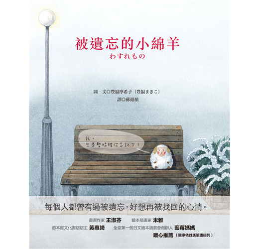 本書的另一個重點是小綿羊的信心。他堅持自己只是被「忘記」而不是被「丟棄」。他很清楚之間的差異──被暫時忘記的話,主人一定會來接他。因為有這樣的信心,他堅持不離開原處。這也是小時候大人常說的,如果迷路了一定要待在原地,等大人來找你。不管如何,被「忘記」都是讓人難受的,希望我們都不要遺忘自己的重要的人事物,也不會被人遺忘。