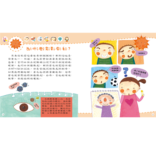 本書特色★臉部五官和我們的情緒表達有什麼關聯?各種有趣的問題和解答都在書本裡。