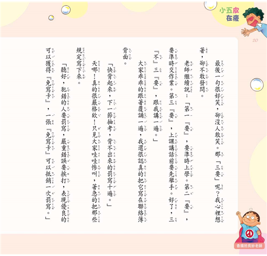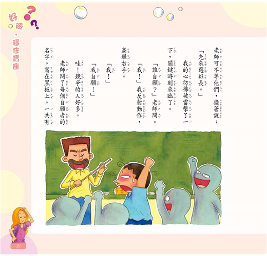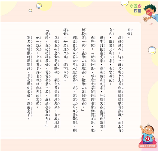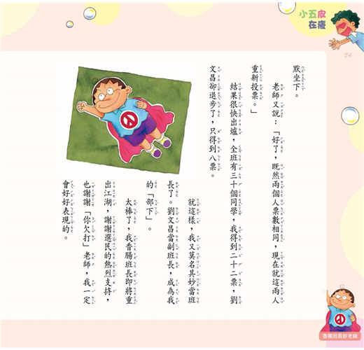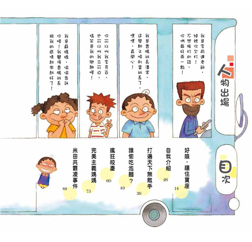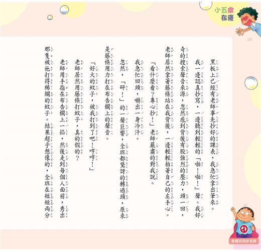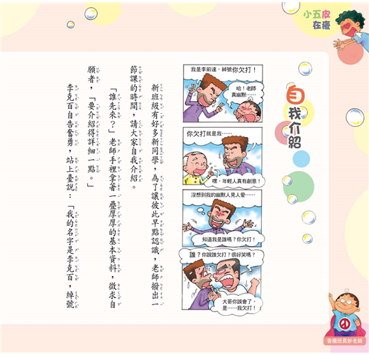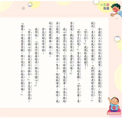 這一回,他升上五年級,重新編班,有了新的老師,也順利選上班長。這位男老師叫做「你欠打」,噢!不,是「李前達」。他素以嚴厲出名,號稱「打遍天下無敵手」,誰敢不乖,就等著挨棍子吧!