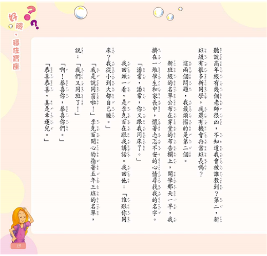 照理說,在這麼嚴格的老師管束下,班上必定瀰漫著一股肅殺氣氛,同學們人人自危,潘常身為班長,管理秩序,執行任務,應該非常輕鬆如意才對。但事實並非如此,五年級的學生比起中年級精明許多,很會察言觀色,也很有自己的意見,想叫他們服氣並不簡單。況且升上高年級,賀...