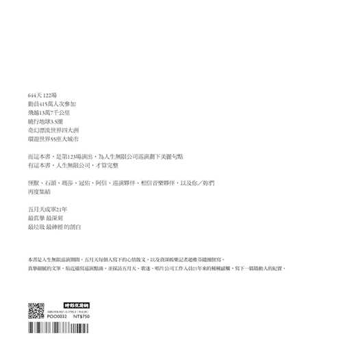 這是五月天成軍20週年的紀念「人生無限公司巡迴演唱會」是五月天成軍21年來,第10場主題大型巡演,自2017年3月啟動,2019年1月最終場,走過55個城市,122場演出,期間創下多個首次紀錄。