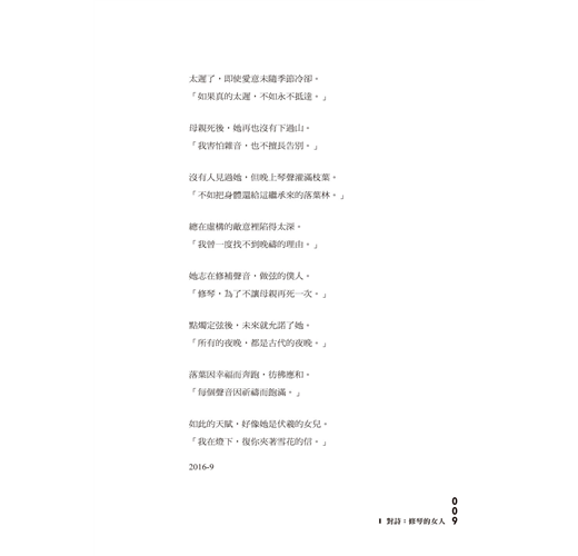 沒有人見過她,但晚上琴聲灌滿枝葉。