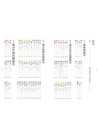 朱‧古代朱‧岩紅‧金茶‧岩樺‧黃紅‧岩赤‧橙黃‧赤黃‧濃黃‧黃綠‧金泥雲母赤口‧金黃土‧朱土‧錆茶‧黑茶‧黃茶綠‧焦茶‧黃口黃茶綠‧白茶‧薄紅色‧岩桃‧赤紫‧青紫‧藤紫‧古代紫‧岩藤‧梅鼠‧藤納戶‧紫紺末‧紫金末‧黑群青‧青鈍‧別上本藍‧群綠‧青灰末‧岩白綠‧岩白群‧藍白‧岩白‧松葉白綠‧裏葉綠青‧蒼色‧濃草‧草綠‧濃綠‧老綠‧青草‧青口若葉‧鶸萌黃‧金泥雲母青口‧黃草‧青茶綠‧純紫金末‧黃碧玉末‧赤金‧鉛丹‧黃白‧銀鼠‧岩鼠‧本紫‧若紫