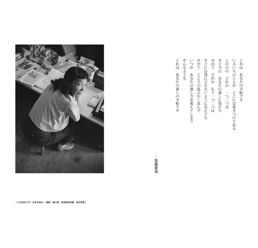 以「商品測試」批判文明,將「日本產品」推上世界舞台大橋鎮子感念母親一生含辛茹苦,期望創辦讓女性更幸福的雜誌,花森深受感召:「我希望立下一個約定,就是打造出不再發生惡戰的世界;我想每個人若是能夠珍惜自己的日常生活,戰爭就不會發生了吧。」1946年,他們在銀座創辦衣裳研究所及《造型書》雜誌,教導親手做西式服裝的知識和技術,兩年後更名為《美麗生活手帖》,增加食與住方面的內容,1953年再次定名為《生活手帖》,以提升普通日本人的生活品質和審美觀為宗旨,同時邀請一流作家如川端康成、志賀直哉為雜誌撰文,在日常中注入文學性。