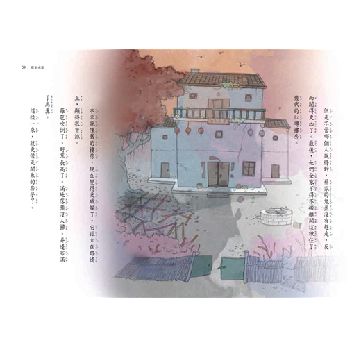 〈蔡家老屋〉是一篇鬼故事。寫作之前,林海音曾說:「許多人都說不要給孩子講鬼故事,我倒要試試,寫一篇對孩子有益的鬼故事。」她真的這樣做了。這個鬼故事的結尾竟是:這個世界上根本沒有鬼!
