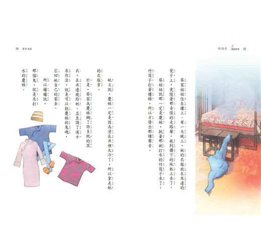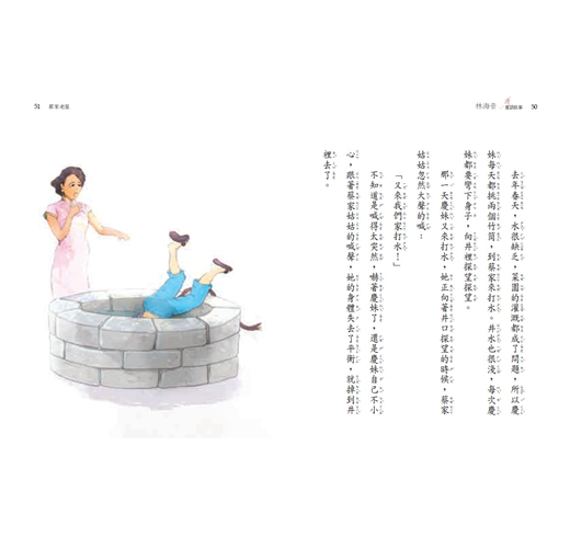 擅長小說寫作的林海音,也常把小說的「出人意料的結局」運用在兒童故事裡。〈金橋〉裡的小英雄,原來竟是站在孩子面前、親切不過的舅舅!〈蔡家老屋〉裡的怪聲,原來是一隻「尾巴被捕鼠器夾住」,半夜拖著枷鎖出來覓食的大老鼠所製造的噪音。
