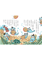 稍微想了想,記憶中聽過的某個版本開始清晰,於是我加油添醋,讓大野狼的呼氣旋成恐怖的龍捲風,小豬的石屋搖搖欲墜,但還是撐過去了。原本的結局挺殘酷的,我決定來個小轉彎,讓大野狼逃回家,然後駕駛大怪手前來……這可是連石屋都擋不住呀!三隻小豬跑向河邊,但是要怎麼渡河呢?豬大哥拔草,綑成一艘草船;豬二哥鋸樹,輕鬆完成一艘獨木舟;至於豬小弟,居然用石頭造出潛水艇,沉是沉得下去,但要浮起來就……