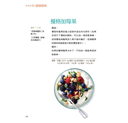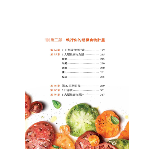 並提供你每天熱量控制在1,600卡內的21日超級食物計畫,與5大超級食物食譜。