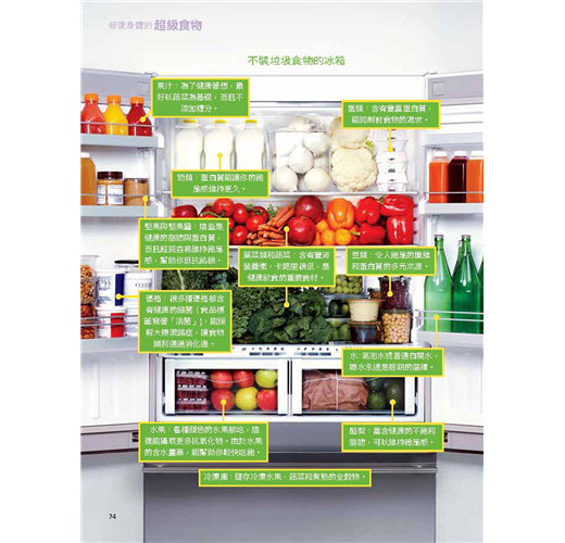 超級食物的概念,不僅與我們選擇原態且均衡飲食的想法十分類似,作者提供了不同身心狀況的營養需求與飲食建議,同時也強調知行合一,讓我們能勇敢步入行動期此外,作者也提供多種方式告訴我們如何找尋、接近、並且愛上這些超級食材,作者更從食材到香料調味品,直接列一張詳細清單,讓讀者備料時更方便!再者,作者提供冰箱、櫥櫃可以放置的食物圖片範本,具體的營造一個健康飲食的環境,最後直接呼應他在一開始的飲食建議──FIXES(好脂肪、好蛋白、多蔬果、好碳水、特殊場合才吃糖),進行21天超級食物計畫,這樣的精心設計與安排讓我們這些營養工作者汗顏,我邊讀邊潛心學習,對這本書十分著迷,書中的圖文精美,把每一種超級食物的美味跟功能都清楚呈現,彷彿過了這21天,我們都可以組一個英雄聯盟,共同為自己及家人的健康未來努力打拚,抵抗壞糖壞油惡勢力!