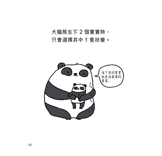 動物寶寶們可能比成年動物更可愛,可是牠們也更軟綿綿、動作更慢。在已然艱困的動物生活中,牠們是相對輕鬆、容易下手的目標。所以,下次當你開開心心欣賞大貓熊寶寶打噴嚏的影片時,你會知道那隻大貓熊寶寶撐過了什麼樣的日子。下次你和某隻鳥爸爸媽媽眼神交會時,可以敬重地對牠們點頭致意。