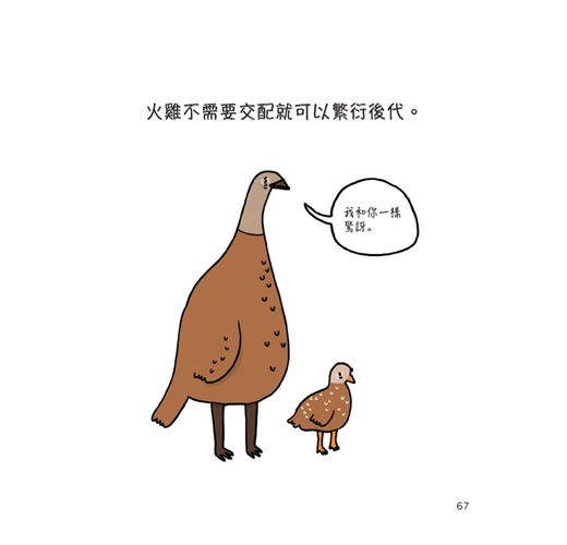 名人推薦:這本書記錄了超過 100種你我所不知道的動物爸媽與寶寶們的小知識,內容中幽默趣味又有點無厘頭的動物OS,有些令人會心一笑,有些令人覺得傷心,但也解釋了許多動物寶寶與爸媽令人無法理解的行為。就像我的育兒過程中,也有許多一般人無法理解的小知識,例如:「爸爸在哄睡過程中,通常會比小孩先睡著」、「10個男寶寶之中、有9個會故意聽不見爸媽的話」、「男人在成為爸爸之後,被另一半罵的機率會增高」等等。