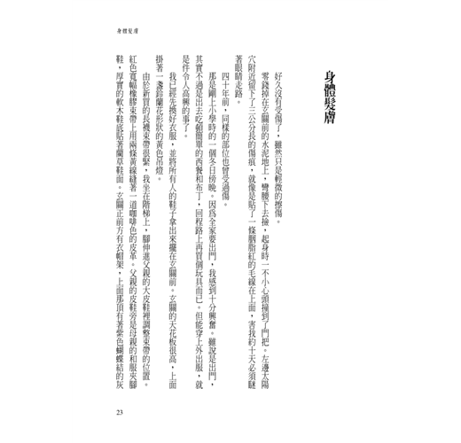 • 孩子們半夜被叫起床並非只是為了吃晚宴剩菜,有時可能是為了一頂紫色的呢帽、黑貓形狀的天鵝絨包包或是童話書、羽毛球拍等禮物。我印象還很深刻,好幾次,父親拿著布料朝我穿著睡衣的肩上比畫,問我:「怎麼樣,喜歡吧?」