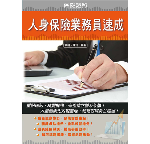 《人身保險業務員速成》由三民專業名師群依最新法條精心編審,書中收錄關於人身保險之契約、條款、相關稅法、管理規則以及所有重要法規,並包含風險管理、人身保險、壽險行銷、契約選擇及投保等實務理論,只要依循名師的步伐循序漸進,便可輕鬆取得證照!