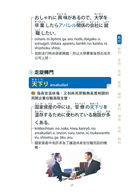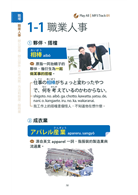 本書歸納成「職場」、「校園」和「生活」等三大主題,其下再細分類為14個單元。包括職場上的人事應對進退、辦公室裡外的大小事項、做事的方法和態度;校園裡的課業生活、各種考試和競賽、放學後的活動;生活中的影視娛樂、旅遊觀光,日本婚喪喜慶的文化習俗等等。