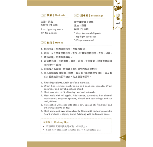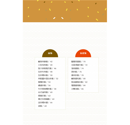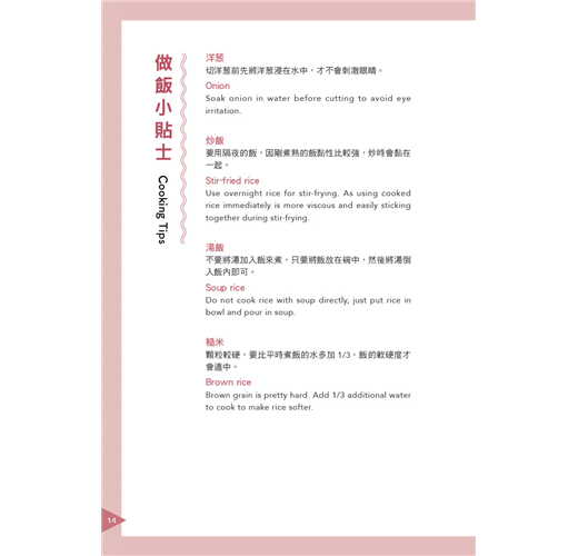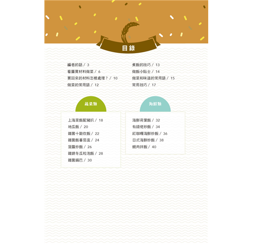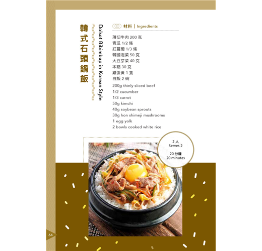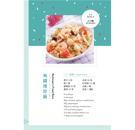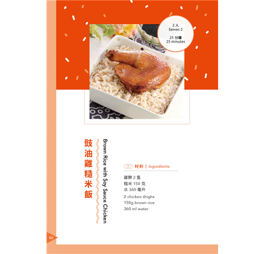 糙米含能促進血液循環和促進腸道有益菌增值,有助預防便秘。而糯米則可溫補脾胃,對脾胃氣虛、常常腹瀉的人有治療效果。沒時間煮飯卻又想吃得健康?本書為你搜羅受歡迎的米飯食譜,例如中式的豉汁排骨鳳爪飯、生炒糯米飯、福建炒飯、焗豬扒飯以及韓式的石頭鍋飯、台式的滷肉飯、泰式的菠蘿炒飯和葡式的葡國焗雞飯等,只要簡單的步驟便可,讓你在短時間內輕鬆做出豐富且美味的菜式
