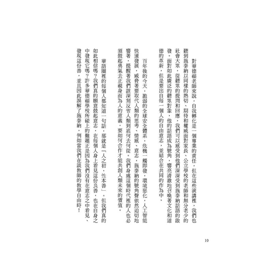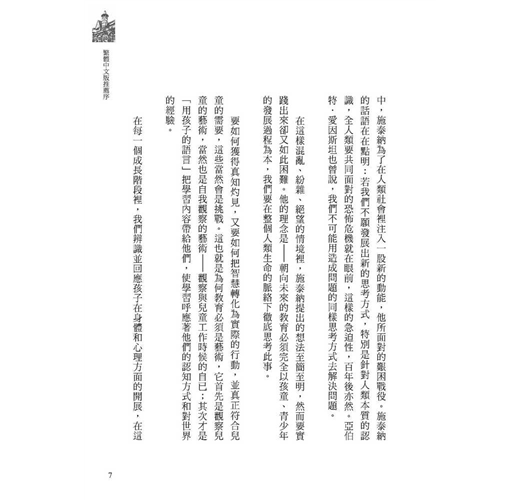 這一年也是第一所華德福學校成立之時。這所學校的創建受到奧地利靈性科學研究者魯道夫•施泰納的啟發,本書收錄他在創校前後的六次公開演講以及一篇專文,華文版並增加收錄第一所華德福學校開學典禮時的兩篇致辭。