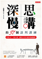 但你或許會擔心真正臨陣時,仍然會說得七零八落?放心!本書作者除了教你「深思看懂對方心裡、慢慢講無遺漏」外,還根據談判、提案、人際往來等場合,歸納出57個談判實境訓練,再佐以學術數據和實驗詳盡解說,幫你在談判前做好萬全準備!