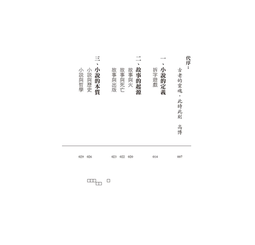 如何定義小說?在中文與西方對小說的界說恰是兩極,在中文裏,「小」有微不足道的貶義,品性不良的謂「小人」;旁門左道謂「小道」;沒什麼用處的技藝謂「小技」,因此「小說」亦是貶詞,最早提到有關小說的評價的可能是荀子:「君子大道而已矣,小家珍說之所願皆衰矣。」,因此「小家珍說」可說是「小說」最早的拆字與定義,是與大道相對的微小之物。至《漢書‧藝文志》出現的小說家還是敬陪末座:「小說家者流,出於椑官野史,蓋街談巷議,道聽途說之所造也。」跟現在的馬路消息,八卦傳說接近,「說部」的名稱...