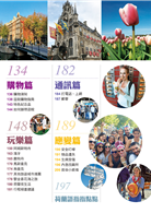 從行前的荷蘭行程規畫建議、辦理各種簽證機票、行李打包,到出境、落地接駁、當地的食、衣、住、行、育樂、通訊、緊急應變,無所不包。