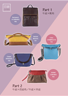 *皮革與不同材質的搭配組合本書分為牛皮×帆布、牛皮×仿皮布、牛皮×羊皮、牛皮×防水布、全牛皮製作等多種搭配,皮革與不同材質的組合技巧都不太相同,了解材質的特性,讓您對材料使用上更得心應手。