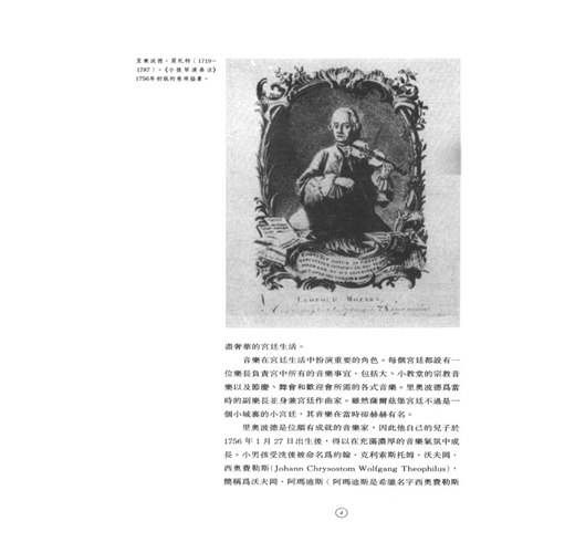 究竟莫札特是什麼樣的人?他與家人、恩主及其他同時期作曲家、演奏家的關係如何?他的作品在當時得到的反應是什麼?而他所生長的十八世紀後半的歐洲社會,樣貌為何?這本傳記便是以這些主題為重點,以平易近人的文筆,精簡扼要地將莫札特音樂生涯中重要的人地時事做一清楚交待,並大量引述莫札特父子及其親朋好友的親筆書信或日記原文,讓讀者能夠透過莫札特或其他當事人的現身說法,真切地體會當事人的感受及看法,此為本書一大特點。此外,作者在字裏行間往往不忘加上有關當時歐洲生活細節的描述,譬如交通工具、通郵方式、貴族對待音樂家的態度等等,同時又附上百幅的畫像圖片,使讀者進一步了解莫札特所處生活環境及時代背景,此乃本書另一優點。本書在章節安排上也頗具巧思,全書分為10章,前5章介紹莫札特17歲周遊列國的情形,恰好占他35年生命的一半。後面5章中,前兩章介紹莫札特17至25歲受制於傳統恩主制度的歲月,後4章描述他生命最後10年的維也納時期,在比例上也相當符合這兩個時期在他生命長度中所占的實際比例,這是本書另一值得一提的地方。